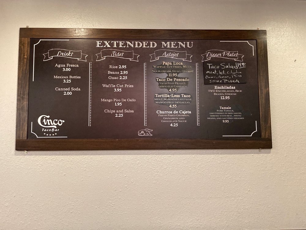 Introducing Cinco TacoBar, a Mexican restaurant located at 4526 Las Positas Rd in Livermore, CA. This trendy and casual spot offers a variety of dining options including delivery, takeout, reservations, and catering. With a menu full of vegan and vegetarian options, Cinco TacoBar caters to all dietary preferences. The restaurant has a full bar with happy hour specials and is open to all, offering gender-neutral restrooms and heated outdoor seating. Whether you're looking to enjoy a meal with friends or family, Cinco TacoBar is the perfect spot with its hipster vibe, Latinx-owned status, and dog-friendly outdoor seating. Don't miss out on the chance to savor delicious Mexican dishes in a welcoming and inclusive atmosphere.